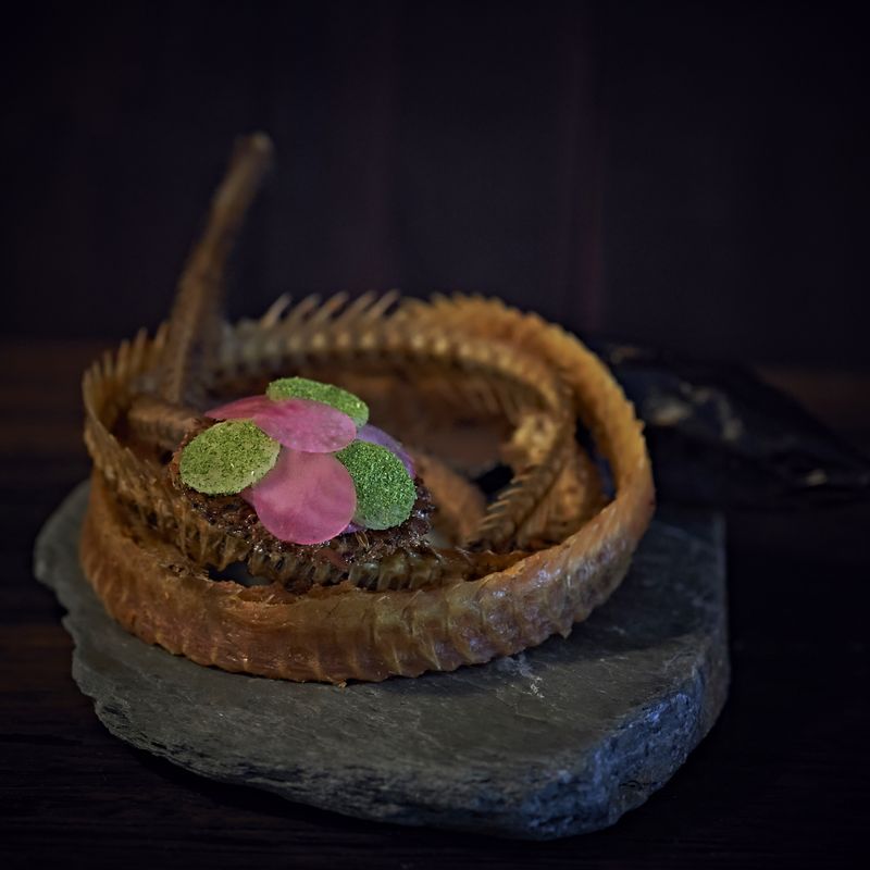 The menu tends to be dramatic, especially in winter, because of the extreme conditions around us. The mountains are covered in snow, and the vegetables are dead. The cold, harsh winter climate really shapes the menu. If you forgot your dog outside on some days, it could die—it’s brutal. So, we want to reflect that brutality in our dishes. We focus a lot on ocean-based flavors, and our food captures the feeling of being here at that time, in that harsh winter environment.