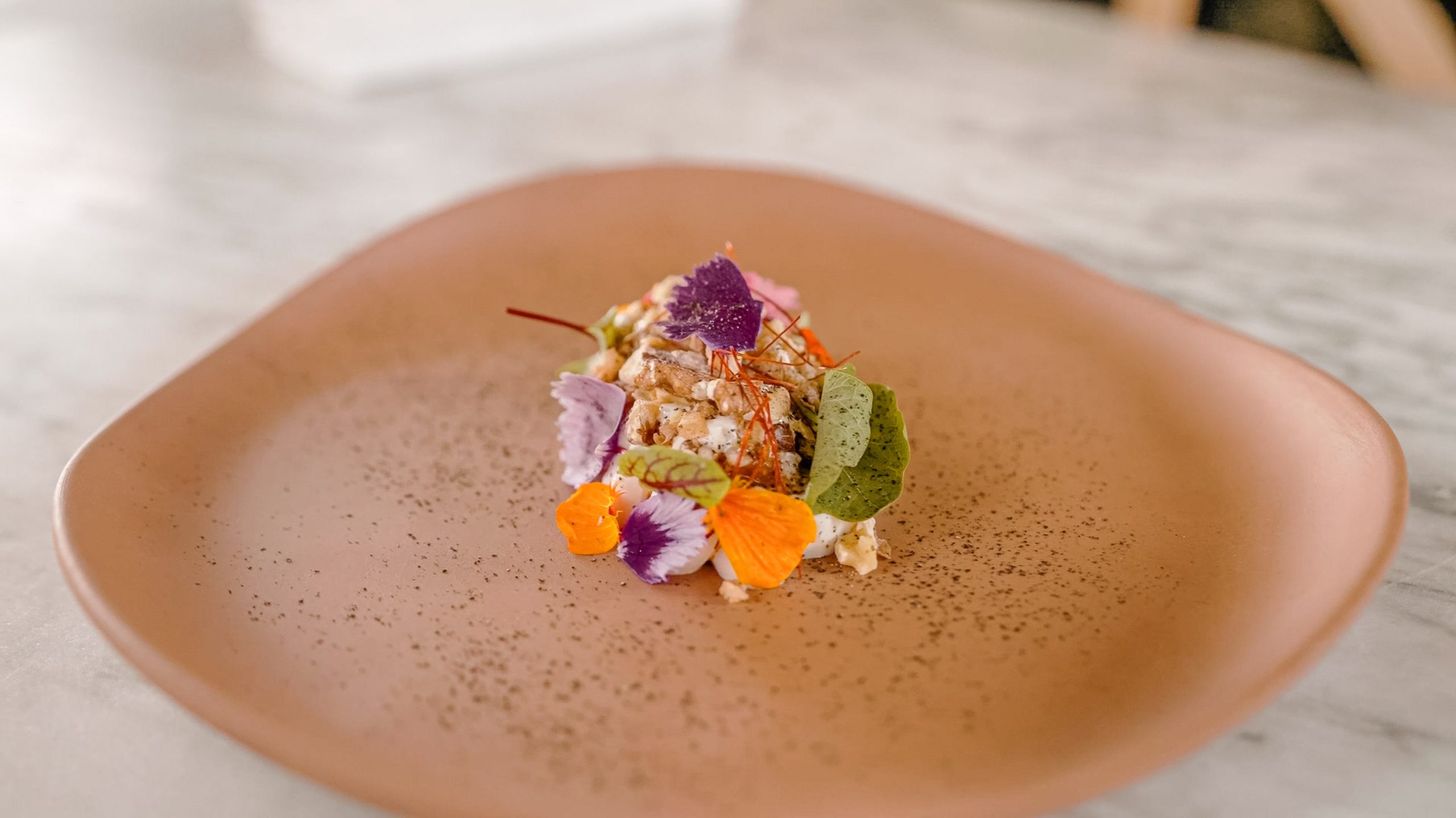 Mohammad Orfali: Well, in Orfari Bro’s, we don’t serve Syrian food. We make Orfari cuisine. Orfari cuisine, that’s me and my brother, and our journey started from Aleppo to Dubai. So, I have a few dishes on the menu that represent who we are. But we decided at Orfari to make a new cuisine, called Orfari cuisine, which represents the Dubai community. You can see the menu has different diversity. It gives us the freedom to do what we want to do. If we put myself in a box into a category, let’s say, Syrian food or modern, nothing wrong with it, but I don’t want to put myself in a box and limit myself with only one type of cuisine. So we are a cuisine of ingredients. We focus on taste, taste, taste, taste, and then textures and ingredients. These are the three things that we stand by. So we can see my food, it has, from the modern school, it looks uneasy sometimes, but it’s very complicated from the kitchen. And we love ingredients, so we like to take one ingredient and manipulate it differently.
