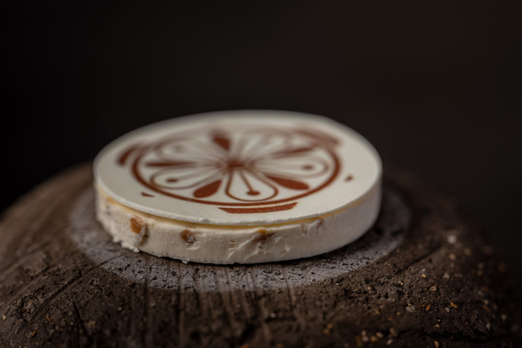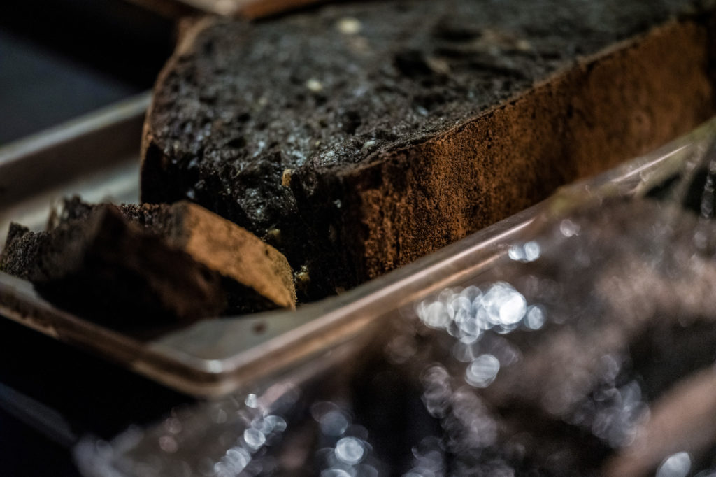 VM: What you are talking about is the black Borodino bread. I wanted to create my own bread for The White Rabbit. In the Holy Prilutsky monastery not far from Vologda (famous for its high level of craftsmanship) I found a totally unique variety of sourdough. The Father, who also bakes the bread for the monastery, gave me his permission and blessing to use it for The White Rabbit. Using that sourdough, we bake several varieties of bread for The White Rabbit Family. The Borodino bread accompanies the first dish of the Contrast menu. It serves as a bed for coco lardo, tender slices of coconut fruit that almost tastes like lardo. We present it together with Polugar which has some similarities with vodka but is actually a much more ancient spirit produced with rye. It offers a far richer and layered aroma than vodka and blends in excellently with the Borodino, coco lardo and linden buds that complement the dish.