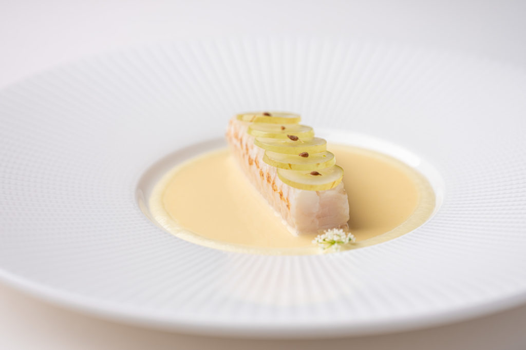 The dish of Dover sole, fennel, white grapes and beurre blanc is well-balanced thanks to its creamy sauce with a hint of acidity.