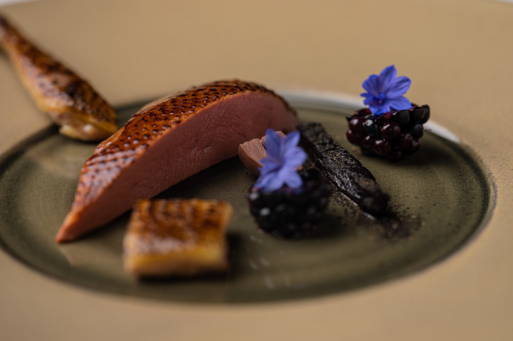 The chefs demonstrate that you can be very creative when preparing the different parts of a pigeon: bresse pigeon with preserved blackberries, Forono beetroot ‘liquorice’ and a sauce of the bones and liver.