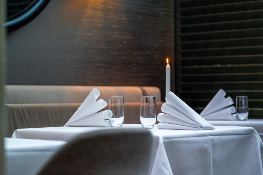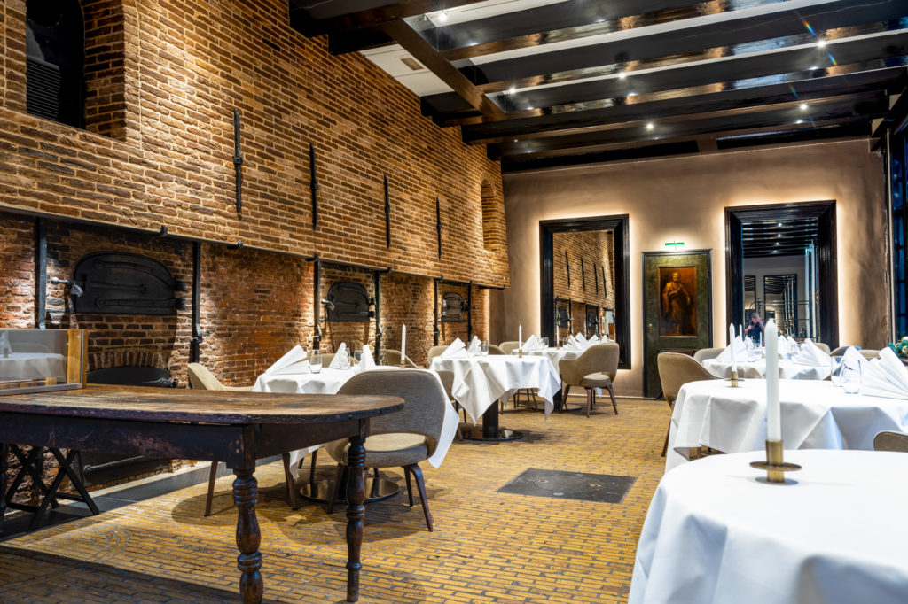 Situated right on the prestigious Keizersgracht canal near the ‘9-streets’ area, and just a short stroll from the city’s main attractions, the hotel and restaurant couldn’t have a better location. The building’s history goes all the way back to the year 1613, when the first city theatre was founded here. The restaurant is located at the back of the hotel, in a cosy and separate dining room. Inside, it’s as though you’re having dinner in the midst of an old bakery, as they’ve managed to keep several original features – such as the old ovens, the brick walls and wooden elements – intact. These robust features are complemented by the warm and sophisticated decor that uses elegant, classic and timeless interior design elements like natural colours in varying shades of brown and cream, soft fabrics and comfortable chairs, perfectly starched white table linen, and elegant candles to finish off the table setting. To complete the wow factor, the restaurant gives a delightful view of the secluded and romantic garden.